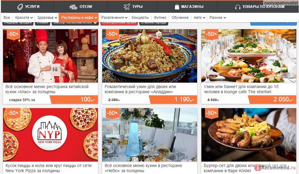 В Краснодаре 52,6 % приобретенных купонов относятся к ресторанам европейской кухни, 19,3% — к паназиатской, а 16,3% — к кавказской. При этом на заведения японской кухни пришлось лишь 2,5 % проданных купонов.