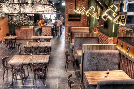 Позже, в такие же сжатые сроки, с 10 января по 7 июля 2017 года, построили и открыли бар. Сейчас у нас здесь три этажа, вернее — подвал площадью 200 метров, где находится пивоварня производительностью до 45 тысяч литров пива в месяц, и два этажа над ним — собственно ресторан, в общей сложности 126 посадочных мест.
