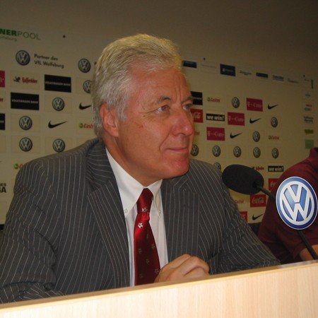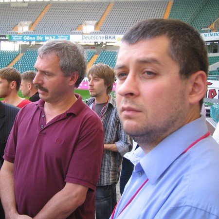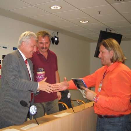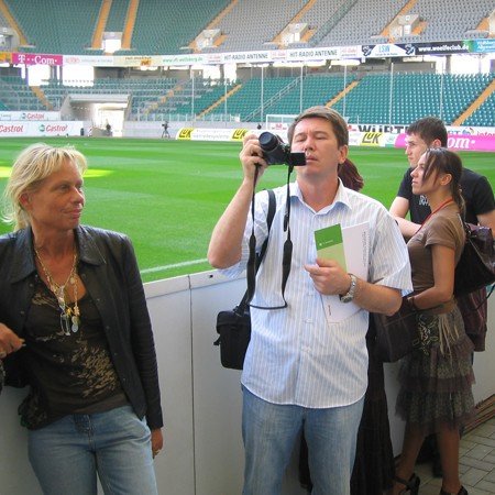 Уникальная возможность только для нашей группы побывать в раздевалке хозяев и гостей за несколько часов до вечернего матча. Далее — пресс-центр клуба, где нас встречает генеральный менеджер Vfl Wolfsburg Клаус Фукс. В футбольном мире Германии к мнению этого человека прислушиваются практически все функционеры и менеджеры. Во время нашей встречи с Карлом-Хайнцом Руменигге мы услышали самую высокую оценку профессионализма господина Фукса.