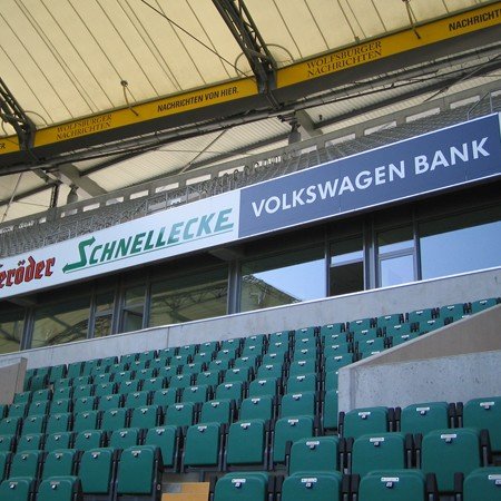 После посещения автоконцерна захотелось приобрести «Фольцваген»... Кстати, по контракту, все игроки и менеджеры «Вольфсбурга» обязаны использовать VW на всех официальных мероприятиях команды. И вот мы опять на «Флоьксваген Арене». Громадное отличие пустого стадиона днем и переполненной фанатами и эмоциями арены перед самым матчем. Группа заметно позеленела. Причиной тому зеленые шарфы с символикой клуба, приобретенные в фан-шопе в знак поддержки «волков». Располагаемся совсем рядом с группой поддержки «Ганновера 96». Поющая без устали «красная армия» фанатов из соседнего города заставляет нас думать об очень хорошей работе с болельщиками клуба. После одного из ударов нападающего гостей мяч летит в мою сторону. Секунда и я, как заправский вратарь, фиксирую мяч одной рукой (в другой — бокал с напитком...).