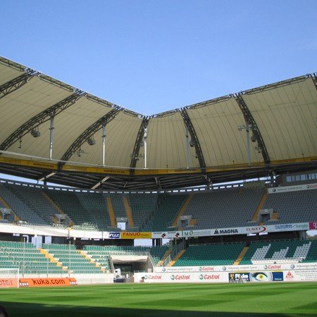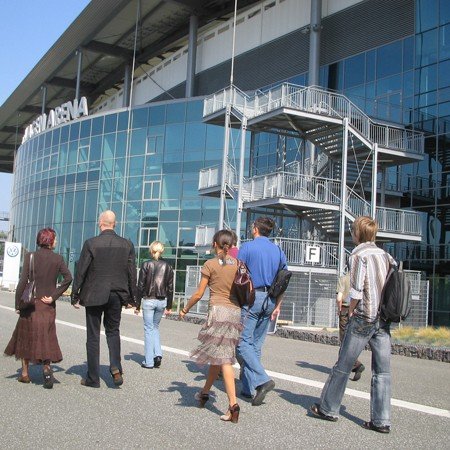 Солнечная, теплая погода продолжает «преследовать» нашу группу. Слева от дороги — «Фольксваген Арена» и футбольный клуб «Вольфсбург», справа — гигантская территория торжества немецкой инженерной мысли автоконцерн «Фольксваген». Начинаем со стадиона. С ним нас знакомит ассистент главного тренера «Вольфсбурга». Арена с крышей в форме лотоса покоряет нас своей прагматичностью и функциональностью. Немного напоминает стадион «Локомотив» в Черкизово.