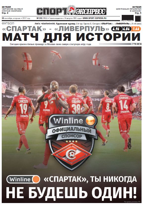 Определенная зависимость, конечно, есть. Но, каковы бы ни были результаты «Спартака», мы стараемся использовать их с пользой для себя. Приведу несколько примеров: на следующий день после того, как клуб оформил чемпионство, первое за 16 лет, на первой полосе «Спорт-Экспресса» вместе с фото празднующих игроков и тренеров вышла наша реклама со слоганом «Ставка сыграла». Тот номер, благодаря масштабу и долгожданности события, разошелся рекордным по нынешним временам тиражом в более, чем 200 тысяч экземпляров, и потом его еще допечатывали.