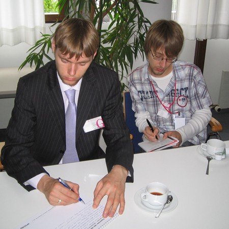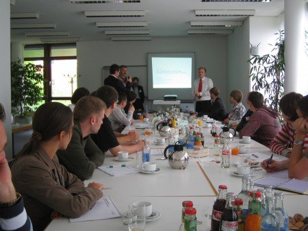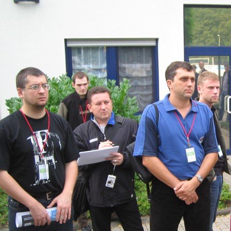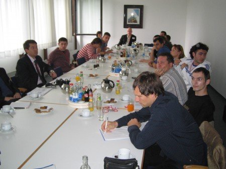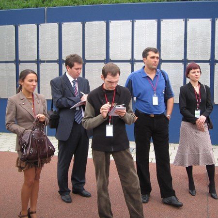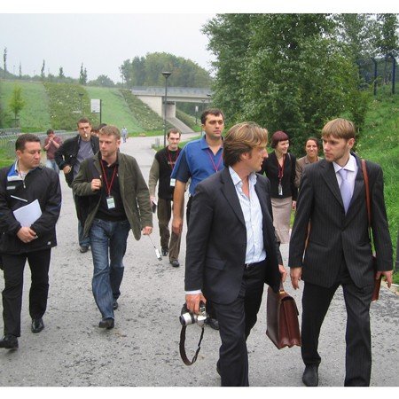 При входе нашу групу вежливо регистрируют в журнале посетителей компании и, снарядив корпоративными бэйджами, провожают в один из залов переговоров.