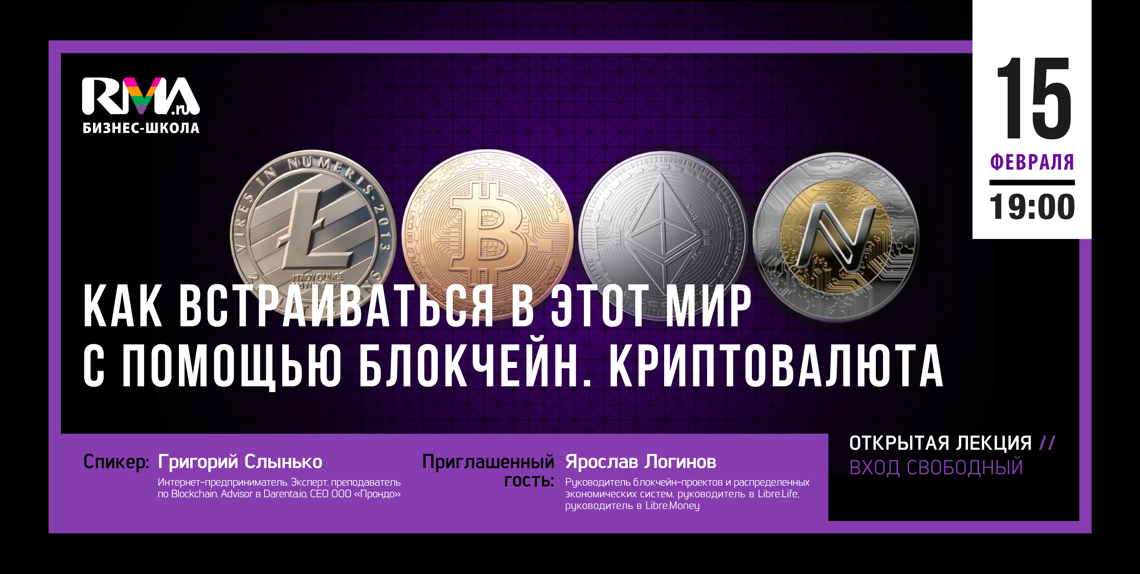 В четверг, 15 февраля, в учебном центре RMA состоится открытая лекция Григория Слынько — интернет-предпринимателя, эксперта КриптоШколы, блокчейн-евангелиста, Advisor в Darenta.io, CEO ООО «Прондо», выпускника и преподавателя факультета «Менеджмент в сфере
