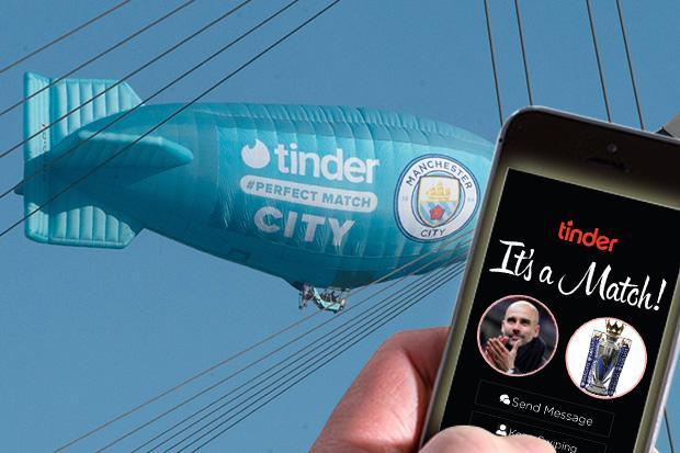 Футбольный клуб «Манчестер Сити» (Англия) объявил о партнерстве с приложением для знакомств Tinder. Подписания контракта ознаменовал пролет в небе над Манчестером большого дирижабля голубого цвета с логотипами сервиса и футбольного клуба.