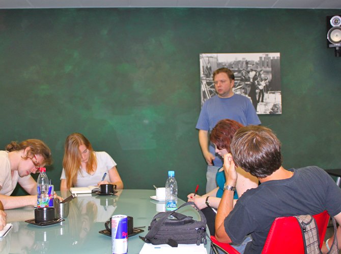 Посещение студии радиостанции "Наше Радио", встреча с музыкальным обозревателем "Коммерсанта" Борисом Барабановым, поездка в Останкино и встреча с редактором музыкального вещания "Первого канала" Дмитрием Коровкиным - в фотогалерее RMA.