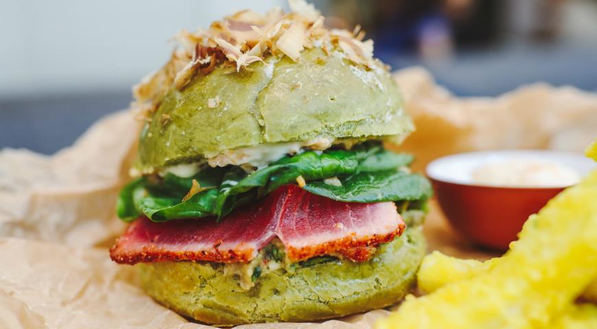 В меню есть, например, лосось в апельсиновом терияки, пельмени гедза с тофу, грибами и листьями мангольда и кейл с подпеченными цукини. Must try основного меню – бургер с лососем, который подается на булочке из японского чая матча.