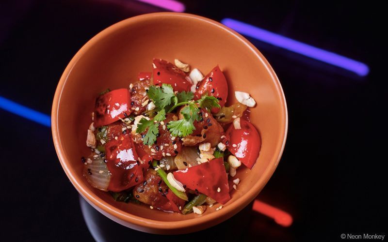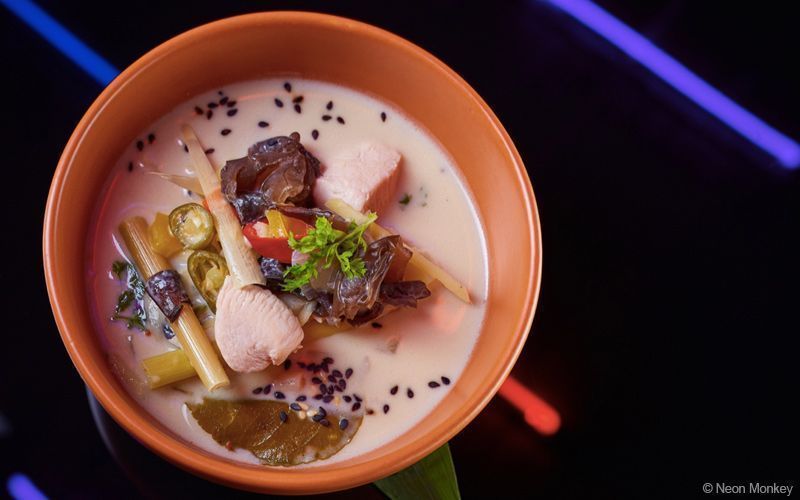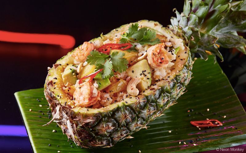Шеф повар Павел Малецкий (бар «Нэко», ранее работал в московском ресторане «Рыбка», Novikov в Дубае и Seafood Room в Гонконге) в Neon Monkey решил готовить аутентичную тайскую кухню в том ее варианте, к которому привыкли туристы Пхукета и Бангкока — в меру остро, колоритно, но без перегибов.