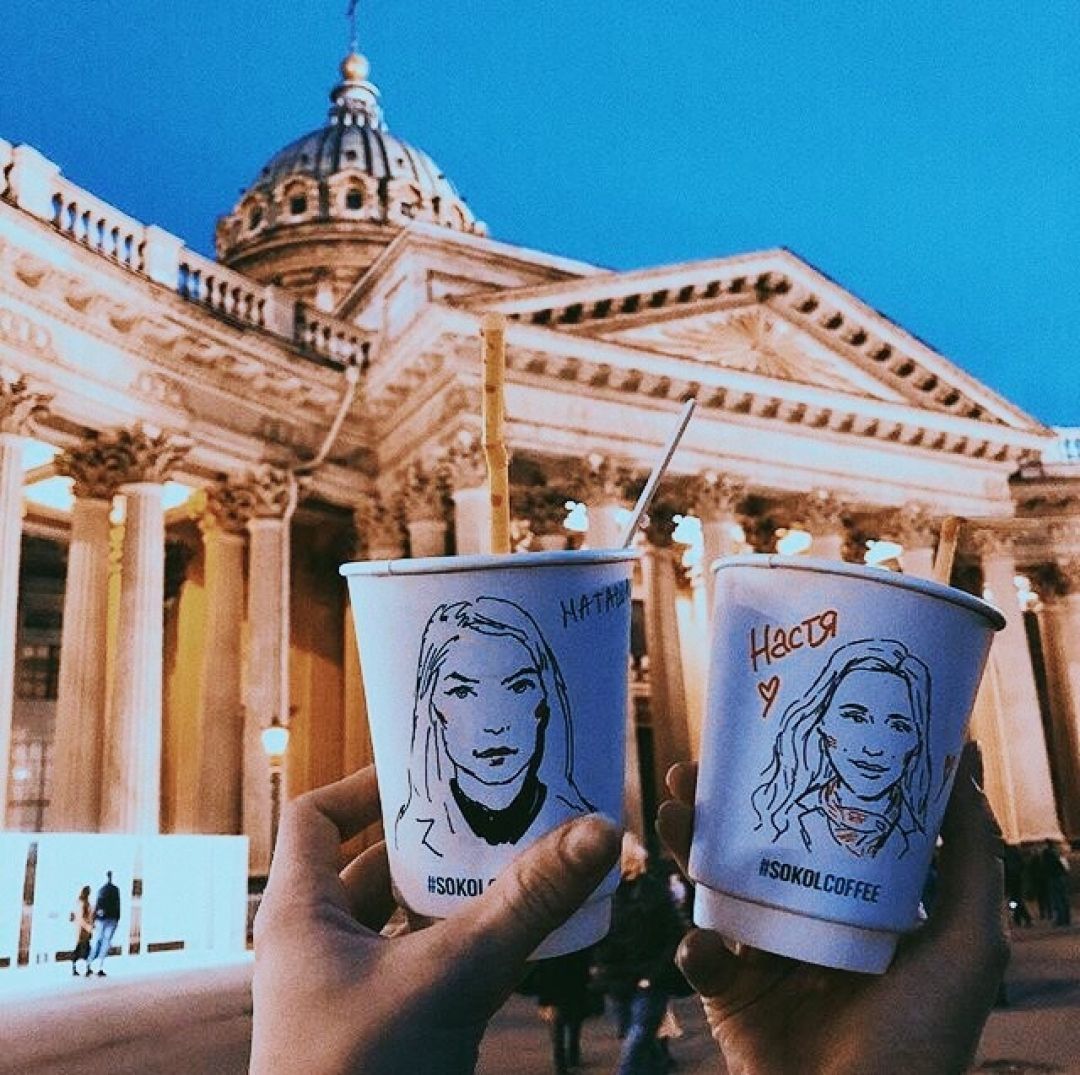 В Петербурге, в Волынском переулке, неподалеку от Дома ленинградской торговли, открылась кофейня сети Sokol Coffee, в которой на стаканчиках рисуют портреты посетителей. Название Sokol заведение получило от фамилии его основателя — 22-летнего бизнесмена Александра Соколовского, пишет «Собака».