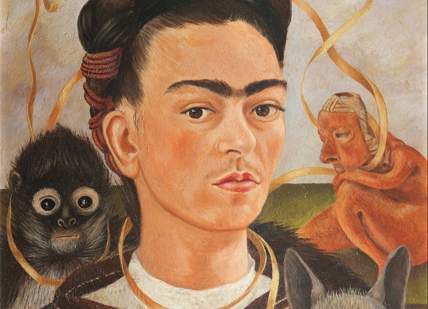 В экспозицию вошли более 90 произведений художников, живопись, рисунки, графика, литографии. Творчество Фриды Кало будет представлено как ее ранними работами, опирающимися на традиции европейского портретного искусства эпохи Ренессанса, так и произведениями периода расцвета ее таланта. Среди них одни из самых известных работ художницы — «Сломанная колонна», «Автопортрет с обезьянкой» (на фото 1) и «Больница Генри Форда», где Кало обращается к теме потери ребенка.