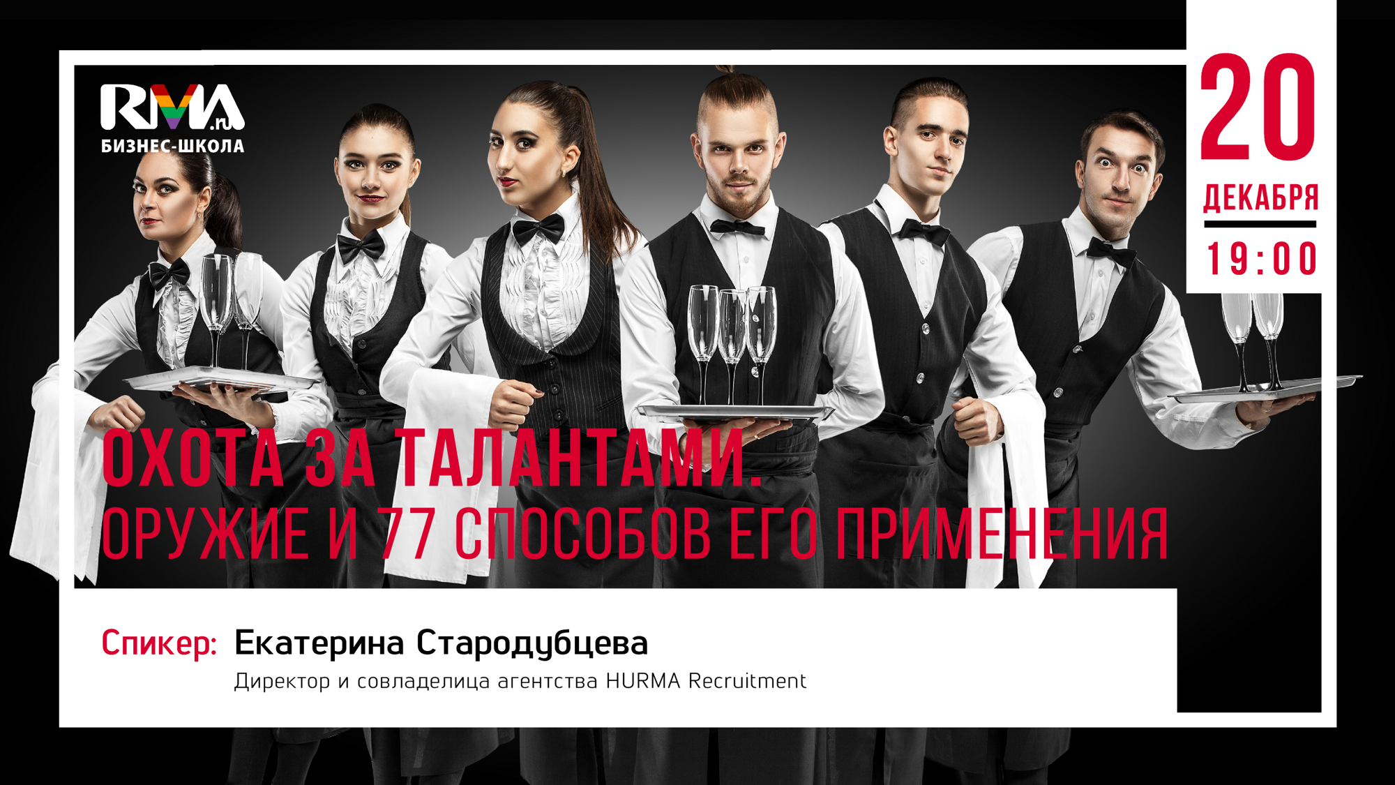 В четверг, 20 декабря, в учебном центре RMA состоится открытая лекция директора и совладелицы агентства HURMA Recruitment, преподавателя факультета «Менеджмент в ресторанном бизнесе и клубной индустрии» Екатерины Стародубцевой, которая расскажет, как найти и заинтересовать классных специалистов в ресторанном бизнесе, а также презентует свою новую книгу.