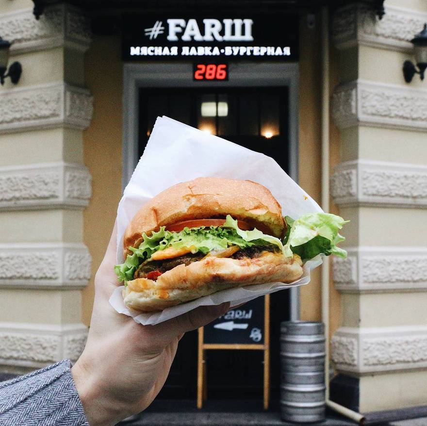 Первый «Фарш» открылся в Москве в 2015 году на Никольской. Сеть занимает третье место среди бургерных по количеству точек и объемам продаж в России.