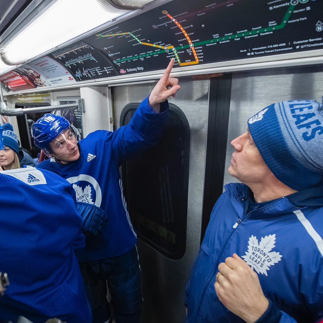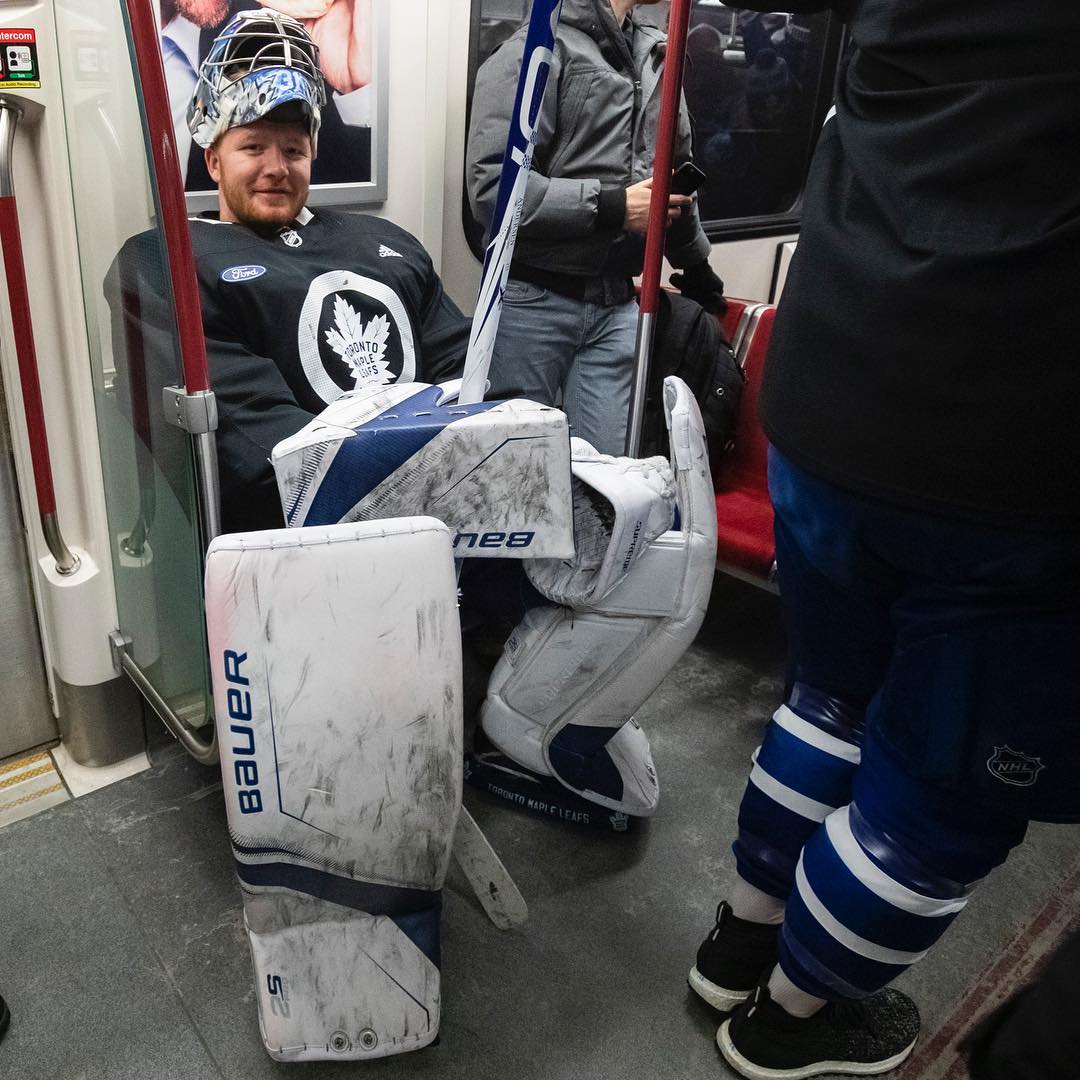 Игроки «Торонто» в полной экипировке, только в кедах вместо коньков, ехали на каток на метро.