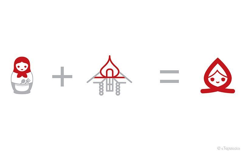 В результате большой совместной работы мы добились результата, которым можем гордиться, — нам удалось объединить уже полюбившийся и нам, и гостям ресторанов силуэт матрешки с изображением теремка, которое отсылает к названию сети.