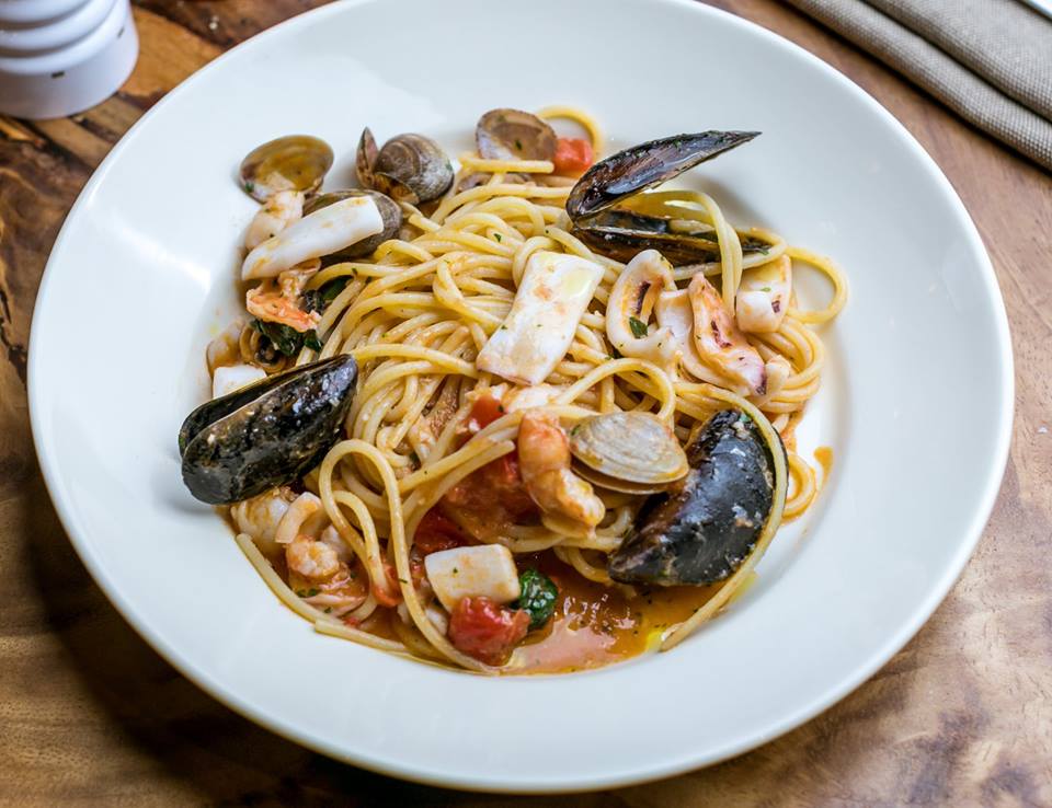 В бистро можно заказать рыбу и морепродукты, итальянскую пасту, приготовленный на гриле стейк по-флорентийски, бургеры и пиццу, которую готовят в русской дровяной печи, пишет