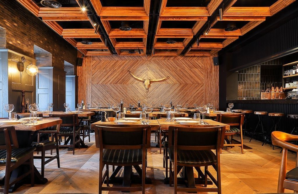 Над интерьером работал турецкий дизайнер Хасан Аккуш и команда агентства H2 Hydrogen İnterior Architect. В зале традиционная для стейк-хаусов рассадка на кожаных диванах и креслах. Стены украшают буйволиные черепа.