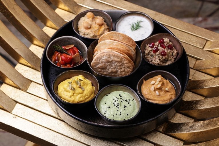 Закусывать коктейли в Hydra предлагают лаконичными блюдами, придуманными шеф-поваром по мотивам ближневосточной кухни. Как вариант - лепешки с намазками (130 р. за порцию на выбор): запеченные перцы/хумус/бабагануш/зеленая тхина/мусс из баклажанов/тыквенный хумус. Кроме того: фалафель с фетой, зеленым соусом и тархуном (250 р.) и запеченный баклажан с томатной сальсой (350 р.).
