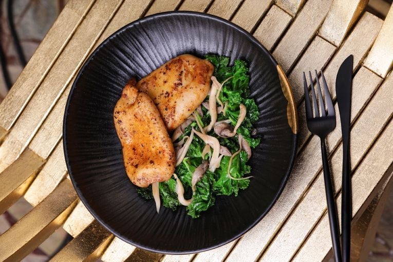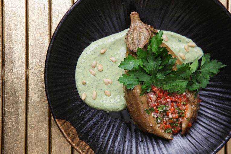 Горячие блюда сложнее - пряный булгур с чернилами каракатицы и обжаренными вешенками (450 р.), ягненок с тремя видами корнеплодов, с черносливом, курагой и изюмом (700 р.), батат с медом и имбирем, киноа и кокосовым маслом (450 р.) или стейк из цветной капусты, с кунжутной пастой и трюфельным маслом (500 р.).