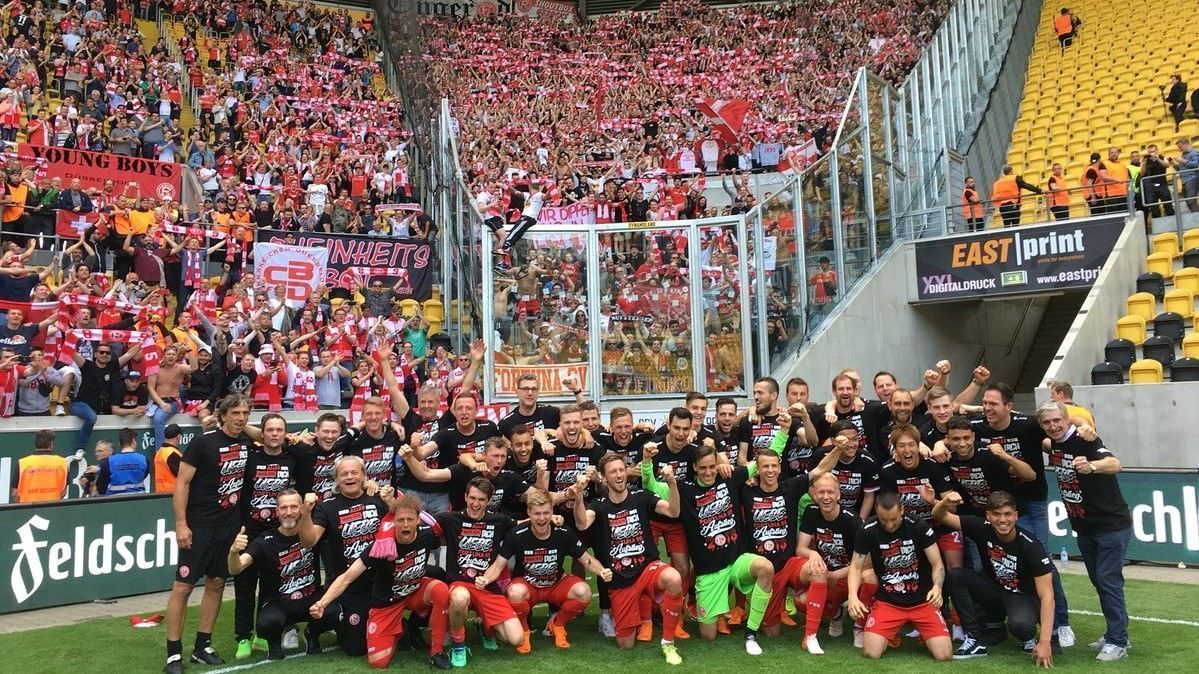 28 апреля 2018 года. Дрезден. «Фортуна» и ее болельщики празднуют победу над местным «Динамо», которая открыла клубу из Дюссельдорфа дорогу в первую Бундеслигу