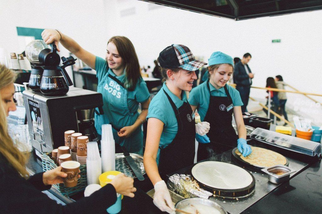 Потом я зарегистрировалась на четырех мероприятиях, на которых встала варить кофе. На пятидневной конференции «ЮС18» в Сокольниках мы продали почти четыре тысячи стаканов кофе — это очень много на самом деле, примерно 800 в день, сейчас в кафе мы продаем примерно по сто. Так я ездила по мероприятиям, отбивая кофемашину.