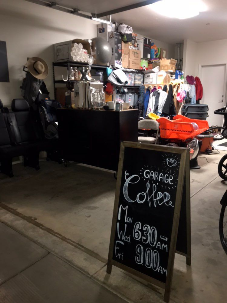 В январе люди, у которых я жила и работала бебиситтером, предложили взять их кофемашину (очень хорошую, надо сказать) и открыть для соседей небольшую точку в их гараже. Так появилось наше первое стационарное кафе, которое проработало два месяца. Первые заработанные пять долларов до сих пор висят над стойкой.