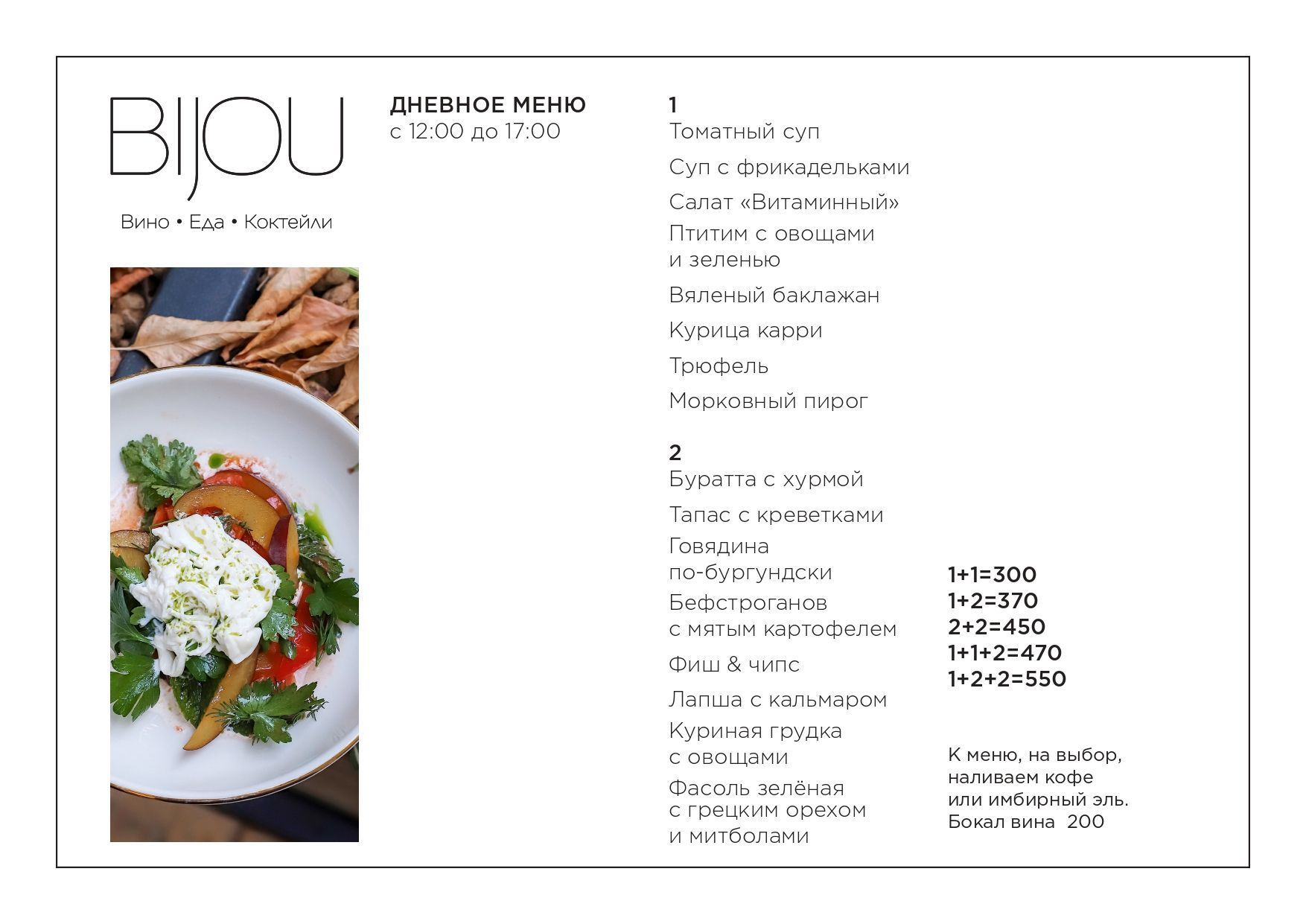 Мы стартовали 23 мая. В течение лета мы активно росли и много чего доделывали на ходу, все прибыли реинвестировались в доделки и только сейчас, к октябрю мы приводим в порядок все процессы, себестоимости и приступаем к нормальному планированию. Так что пока, живых денег мы из Bijou еще не распределяли. При этом первое лето нельзя считать показательным, потому что, когда ты растешь, не время закручивать гайки: себестоимость блюд был огромная, цены для гостей невысокие, мы много угощали.