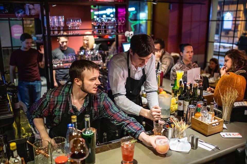 Вокруг нет жилых домов — это большой плюс нашей локации. Можем танцевать и орать песни до шести утра. Но не могу сказать, что мы супермодный бар, заточенный под тусовку, когда спрашивают, что за музыка у нас играет на вечеринках, я даже теряюсь, у нас нет ультрамодного плейлиста. Однажды у нас за углом был день скейтбординга, в соседнем заведении — какой-то важный футбольный матч, а у нас — обычный вечер. В итоге в два часа ночи под «Незабудку» танцевали все: скейтеры, фанаты, театральная тусовка, продюсеры федеральных каналов, молодежь. В общем, еще раз повторюсь, что у нас нет никакой очень концептуальной направленности. У нас все просто и ни к чему не обязывает.