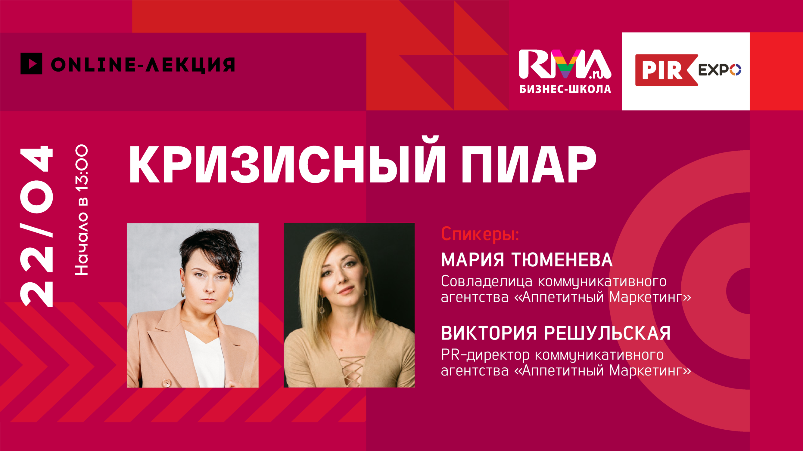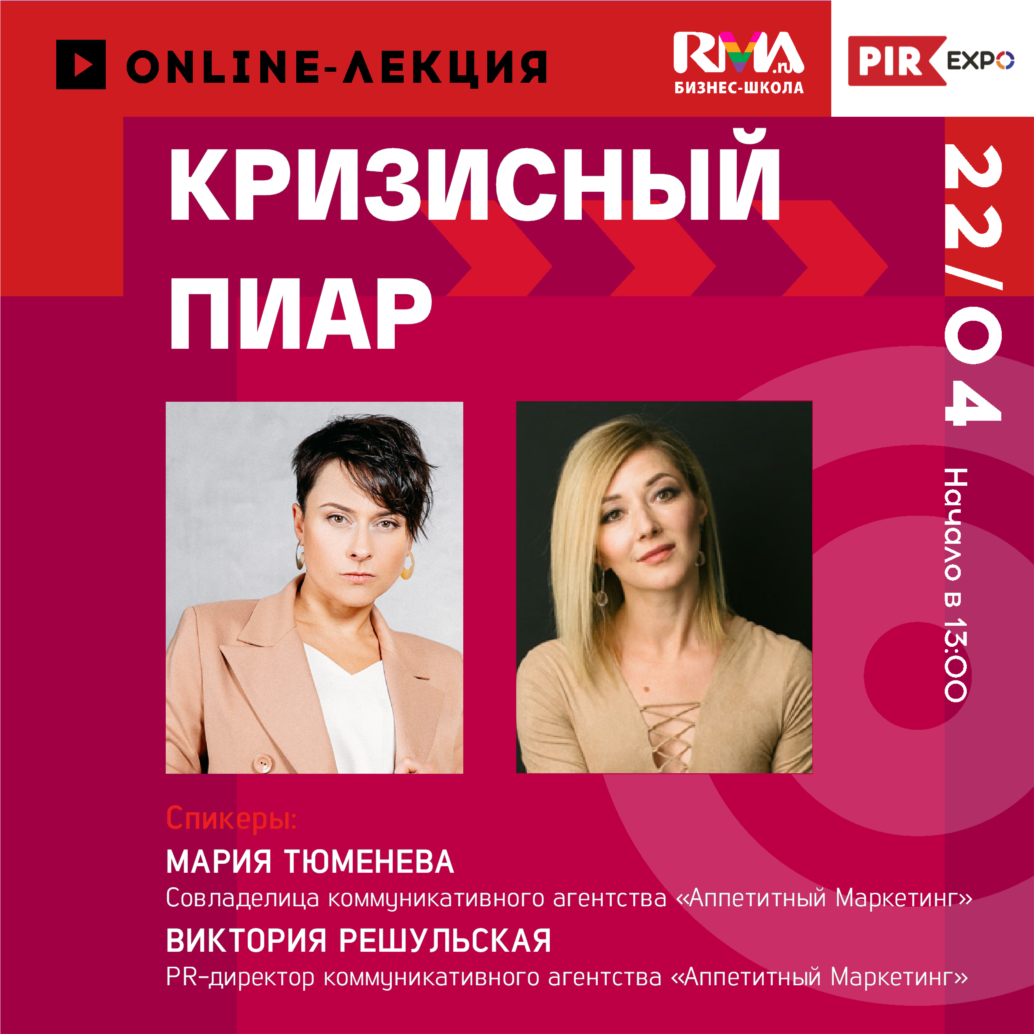 Во время онлайн-лекции Мария и Виктория расскажут о работе ресторанной индустрии во время кризиса, о новых вызовах и стратегическом и ситуативном пиаре. Также спикеры разберут кейсы компаний во время коронавируса и объяснят, как подготовится к выходу из карантина.