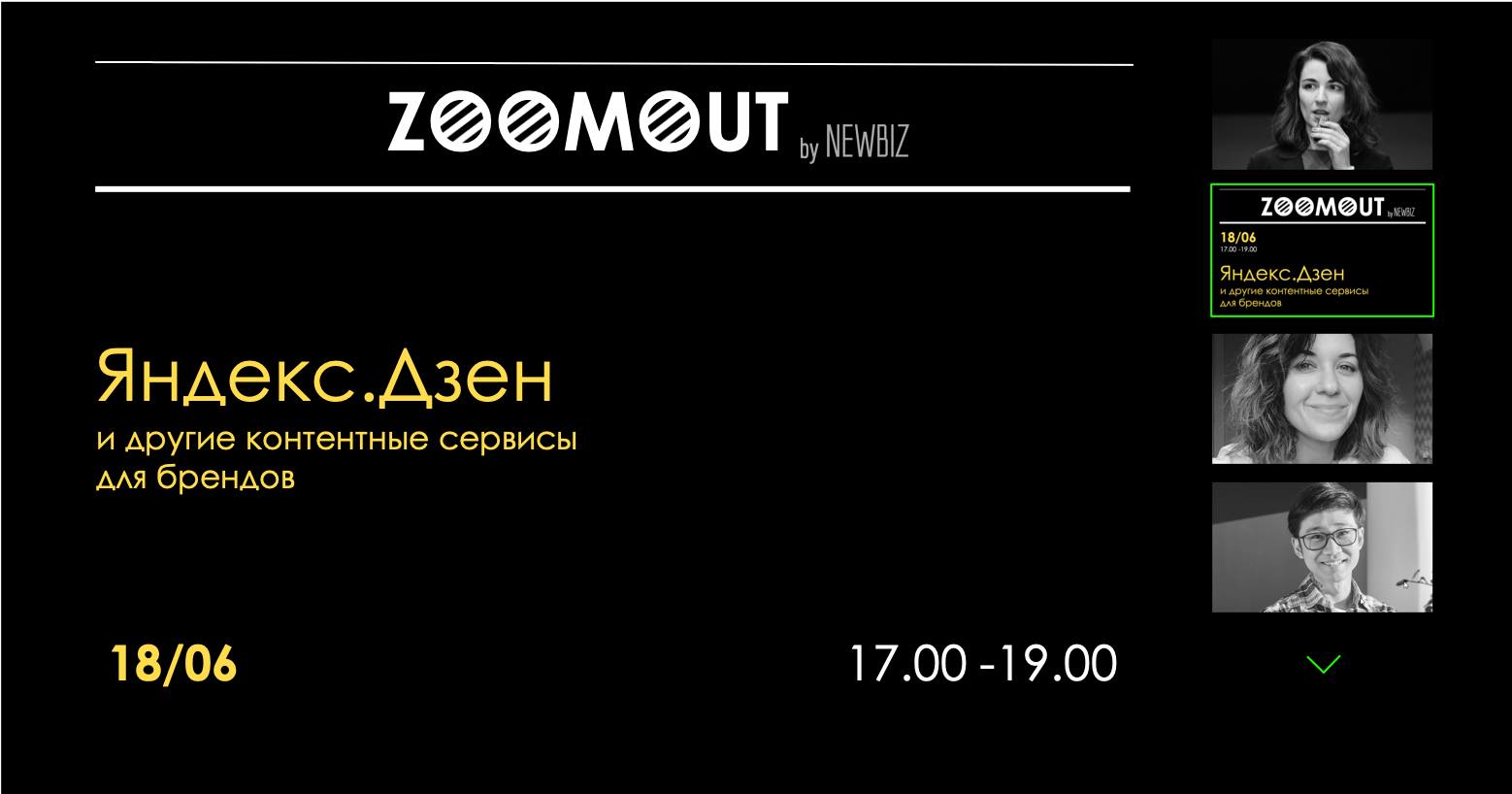 18 июня в 17:00 NewBiz приглашает маркетологов, бренд-менеджеров, контент-мейкеров и других участников digital индустрии на онлайн-митап «Яндекс.Дзен и другие контентные сервисы для брендов» в рамках серии мероприятий ZOOMOUT. Факультет «Менеджмент в сфере интернет-бизнеса» вступает информационным партнёром мероприятия.