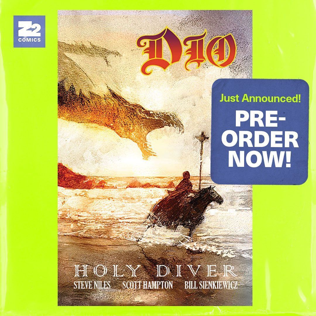 Графический роман на основе обложки альбома группы Dio 1983 года «Holy Diver» выпустит издательство Z2 Comics. Оригинальный рисунок (на фото 1), на котором изображён монстр, убивающий католического священника, сделал Ренди Берретт, а авторами книги стали создатель комиксов-ужасов Стив Найлз и художники Скотт Хэмптон и Билл Сенкевич, нарисовавший свою версию обложки (на фото 2) с всадником и драконом. В проекте приняла участие также вдова Ронни Джеймса Дио Венди.