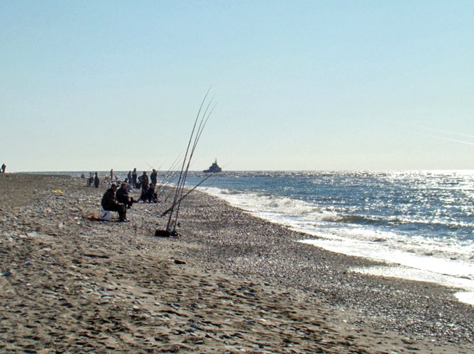 Судя по макетам, с гостиничным комплексом у "Жемчужины" связаны большие планы. Все строительство еще впереди, пока же функционирует только пляж, который в это время превратился в пристанище местных рыбаков.