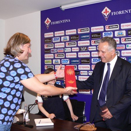 Лука Дзанфорини о выходе «Фиорентины» из кризиса начала 2000-х годов: «Отсчет своей новейшей истории наш клуб ведет с 2002 года, когда его хозяином стал предприниматель Диего Делла Вале (президент и управляющий компании Tod’s, одного из крупнейших мировых производителей изделий из кожи и обуви класса «люкс» — RMA). В то время команда играла в серии С2B (одна из низших лиг итальянского чемпионата — RMA), оказавшись там вследствие финансовых проблем, которые испытывал ее прежний владелец Витторио Чеччи Гори. Делла Вале выкупил клуб у прежнего хозяина. За одно только право использования логотипа и фирменных бело-фиолетовых цветов Чеччи Гори получил 5 миллионов евро. Нанятые новым хозяином менеджеры смогли заинтересовать в сотрудничестве с «Фиорентиной» крупнейшие мировые компании: титульным спонсором клуба стал концерн Toyota, а техническим — известная итальянская фирма — производитель спортивной одежды и инвентаря Lotto. Однако главным итогом финансовых вливаний, произведенных в клуб его новой администрацией стало то, что уже спустя три года команда смогла вернуться в серию A. В настоящий момент наше руководство ставит перед командой задачу занять в чемпионате место не ниже третьего, то есть то, которое позволило бы клубу на следующий год играть в Лиге Чемпионов (в момент нашей встречи «Фиорентина» шла на пятом месте, отставая от занимающего третью строчку таблицы «Милана» на 7 очков — RMA).