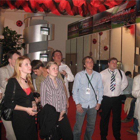 Елена Гастони о схеме распространения сигнала Milan Channel: «Посредством технических ресурсов все той же Sky наш канал в полном объеме вещания ретранслируется на 47 стран мира: России среди них нет, зато есть Украина, где мы сотрудничаем с телекомпанией «Поверхность». Еще в 30 странах зрители имеют возможность наблюдать за сделанными нашими журналистами и операторами обзорами матчей «Милана» в Лиге чемпионов. Если говорить об Италии, то здесь мы имеем около 55 тысяч подписчиков, которые платят за свои абонементы по 8 евро в месяц. Надо сказать, что за эти деньги помимо собственно телепередач они получают некоторые льготы: скажем, если в фирменном фан – шопе «Милана» футболка Роналдо или Кака стоит 80 евро, то владельцу абонемента ее продадут за 70».