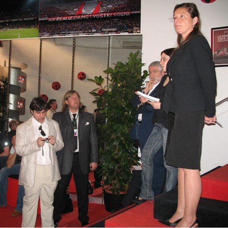 Картинка в духе классиков неореализма. Настежь распахнутое окно в уложенный диким камнем и заросший плющом внутренний дворик. Из окна открывается вид на развешанные на противоположном балконе застиранные простыни и наволочки, едва колышущиеся на жарком ленивом ветру. Трудно поверить, что именно этот раскаленный на солнце подоконник является той самой границей, за которой заканчивается полусонная реальность и начинается большое телевидение. Впрочем, так оно и есть. Здесь живет и работает Milan Channel, первый в Италии спутниковый телеканал, специализирующийся на освещении всех и всяческих событий, происходящих с одноименным футбольным клубом. Заместитель генерального менеджера на канале трудится Елена Гастони. Она – то и рассказала нам о том, как устроена здешняя жизнь. Вот – избранные места из этого рассказа.