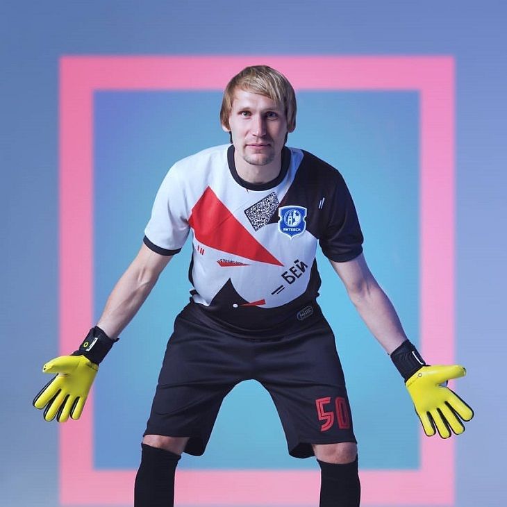 Белорусский «Витебск» представил необычный комплект формы: основа узора – агитационный плакат Лазаря (Эль) Лисицкого «Клином красным бей белых» (см. изображение 1), впервые опубликованный в 1920-м в Витебске. Это художественная интерпретация дизайнера Владимира Горза.
