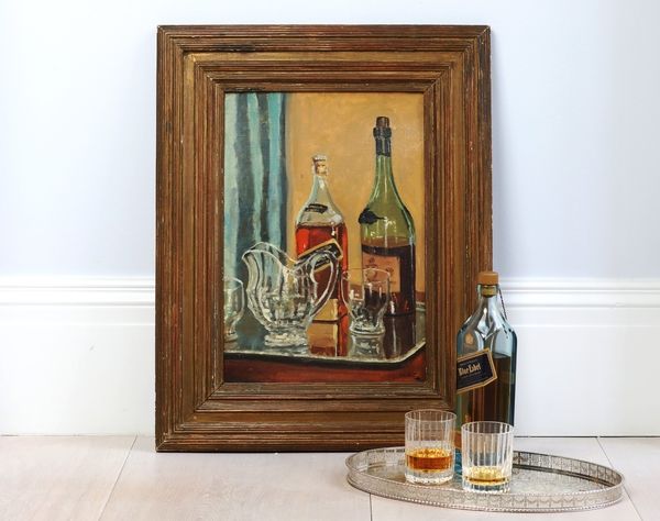 «Кувшин и бутылки» объединяет в себе два самых больших увлечения британского лидера времен Второй мировой войны, отмечают специалисты Sotheby’s. На ней изображены пустой кувшин, стаканы и бутылки виски Johnnie Walker Black label и бренди на серебряном подносе. Работу, написанную в 1930-х в своей усадьбе Чартвелл в графстве Кент, Черчилль позднее подарил Авереллу Гарриману — дипломату, который в 1940-х годах был специальным представителем президента США Франклина Рузвельта в Великобритании и СССР.