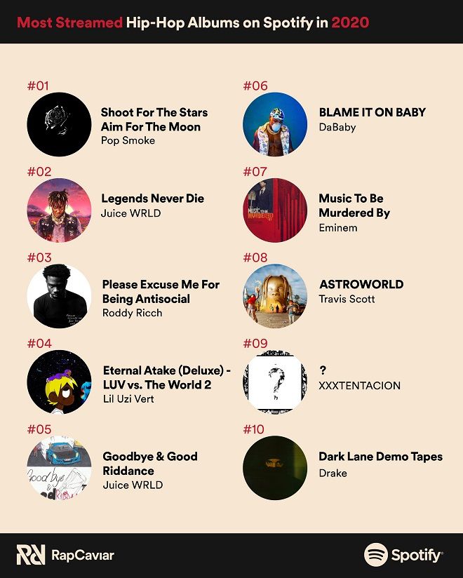 Spotify представил рейтинг самых популярных рэп-альбомов года