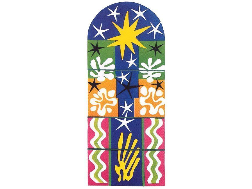 Эскиз для витража, созданный Матиссом, симметричен, но идеальную гармонию двух его частей нарушает ярко-желтая звезда в центре, созданная для того чтобы указывать путь к свету и Христу. Критики называют этот витраж «настоящим зимним праздником цвета, снега и света».