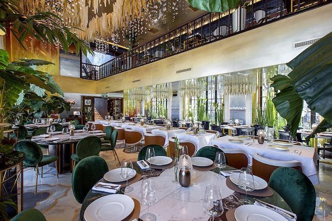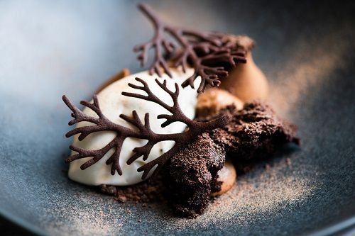 Цитата из меню: Хумус из сельдерея – 520 руб. Паштет из гусиной и утиной печени – 740 руб. Жареные караси – 940 руб. Пельмени со стерлядью – 1200 руб. Мороженое из топинамбура – 500 руб.