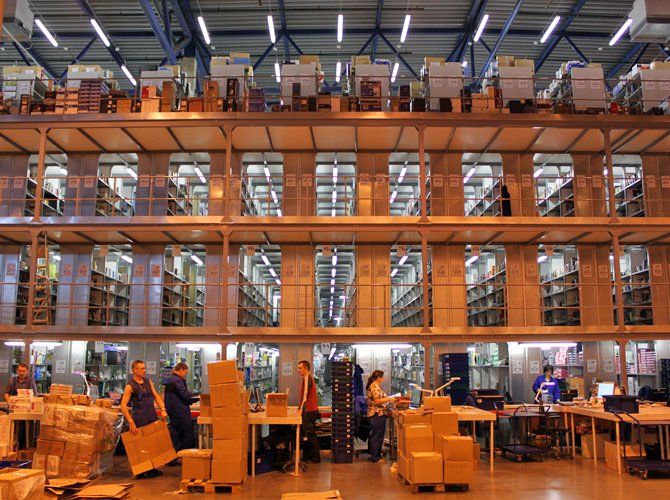 Площадь нового логистического центра OZON.ru составляет около 12 тысяч квадратных метров, практически 90 процентов из которых занимает помещение, где хранятся товары и протекает процесс обработки заказов. Масштабы и технологичность происходящего действительно впечатляют. Во время визита в прежний логистический центр слушатели RMA, что и говорить, ждали от OZON.ru куда большего. И на этот раз OZON.ru не разочаровал: бесконечные стеллажи, торопливо перемещающиеся электрокары, несколько видов транспортеров и гигантский конвейер для формирования заказов, которым операционный департамент OZON.ru гордится также, как гордился своим детищем Генри Форд.