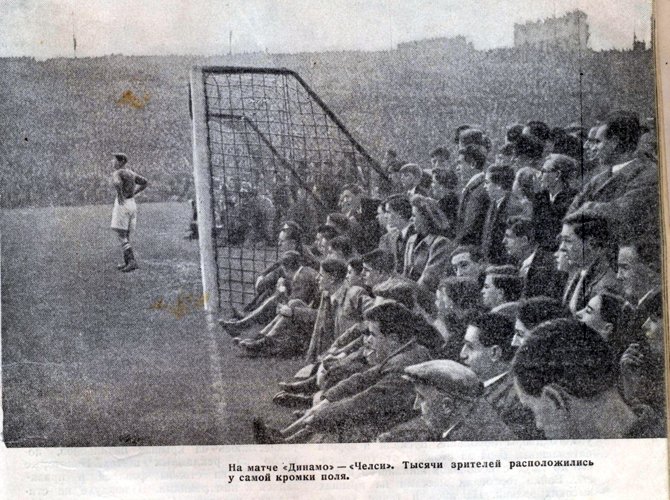 «Еще накануне у стадиона «Стамфорд-Бридж» скопились огромные толпы, тщетно требовавшие билетов; все места для сидения стоимостью в полфунта стерлингов каждое были давно распроданы. 13 ноября дирекция клуба распорядилась начать впускать зрителей с раннего утра. Эти зрители занимали места, с которых матч можно наблюдать лишь стоя.