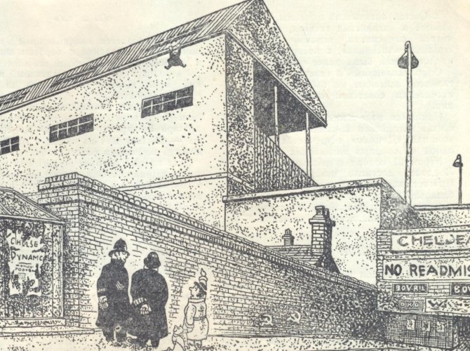 Карикатура из «Сандей Экспресс», датированная ноябрем 45-го. Мужичок, отчаянно вцепившийся в кромку карниза на трибуне «Стэмфорд Бридж». Двое невозмутимых полицейских внизу. И женщина с ребенком. Она просит: «Умоляю, снимите моего мужа! Он висит там с прошлого вторника».