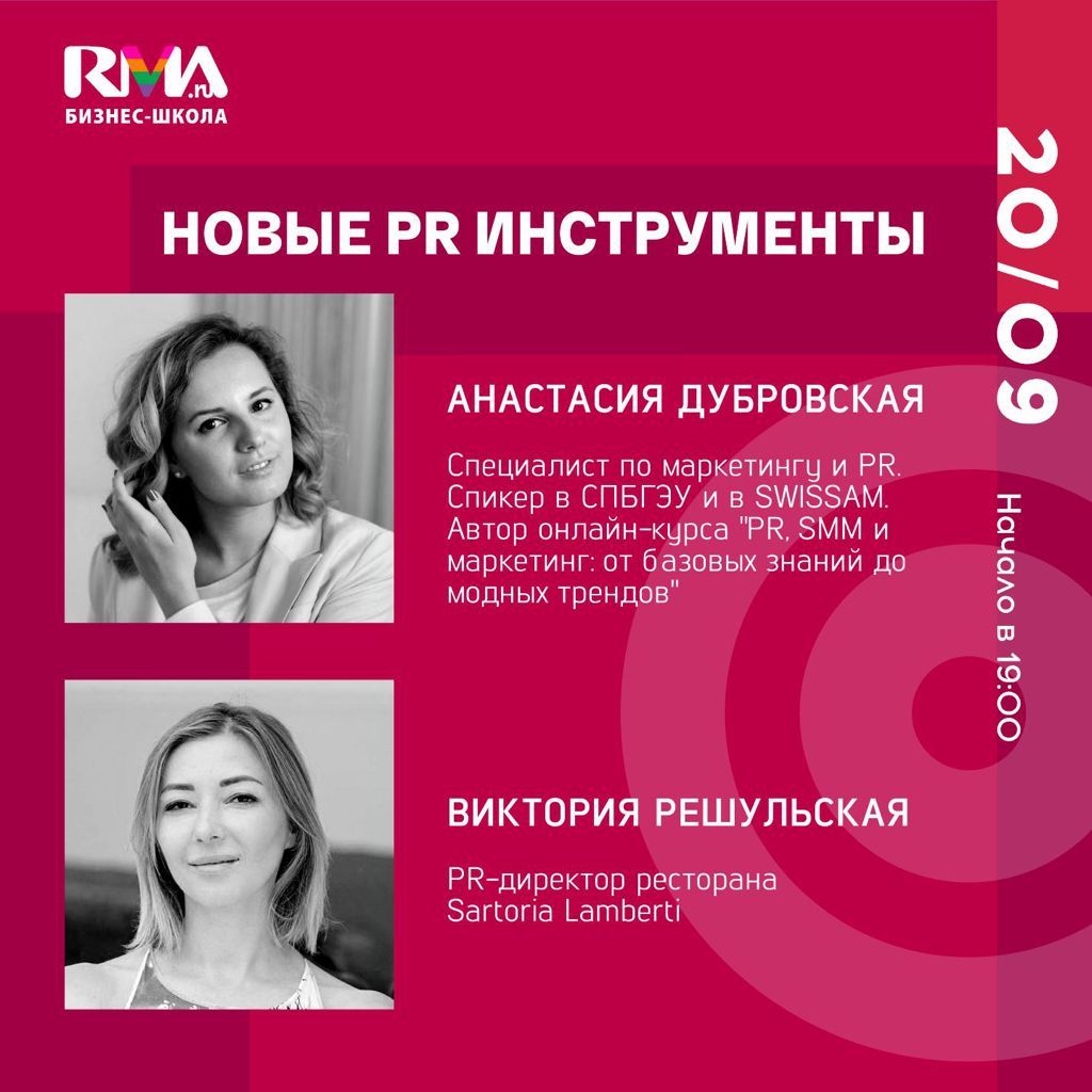 Занятие проведут:Анастасия Дубровская, специалист по маркетингу и PR. Спикер в СПБГЭУ. Спикер в SWISSAM. Автор онлайн-курса «PR, SMM и маркетинг: от базовых знаний до модных трендов»; Виктория Решульская, PR-директор ресторана Sartoria Lamberti.