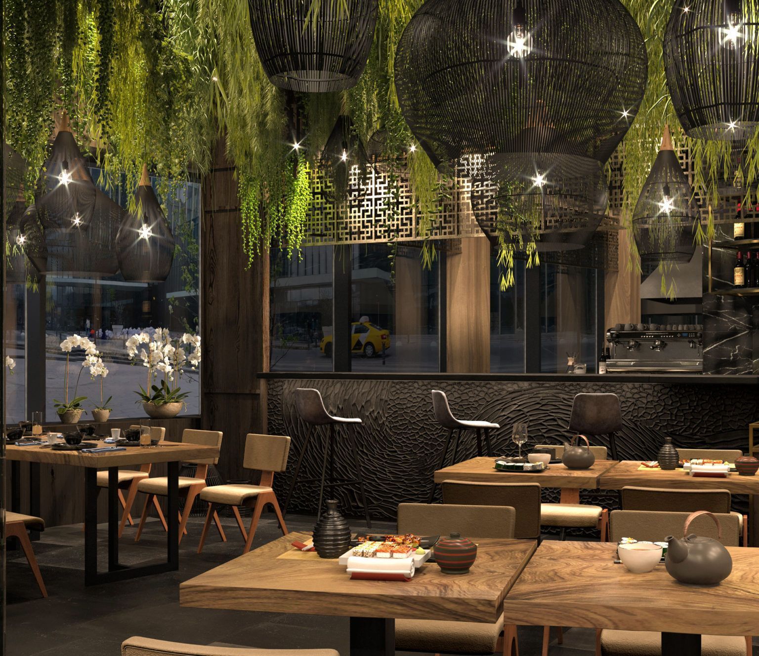 Новый проект, в интерьере которого за образец был взят стиль дорогих ресторанов Гонконга и Сингапура, занял отдельно стоящее стеклянное здание на площади у башен Neva Towers.