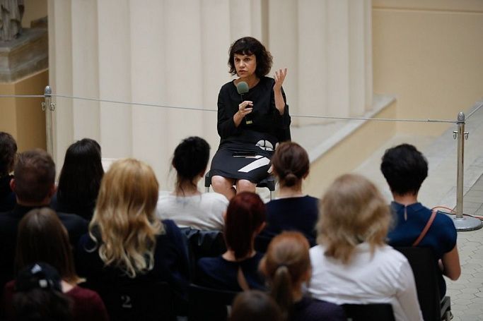 Марина Лошак проводит занятие для студентов факультета Арт-менеджмент и галерейный бизнес. Фото: RMA