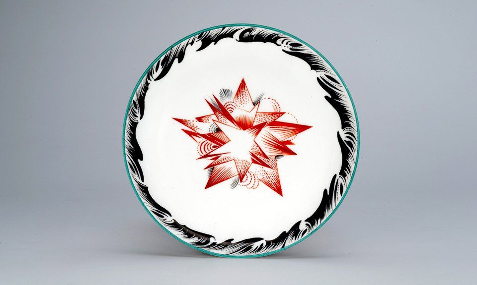 Блюдце «Серп, молот и шестерня». Автор композиции Рудольф Вильде. Государственный фарфоровый завод. 1921.Фото: Государственный Эрмитаж