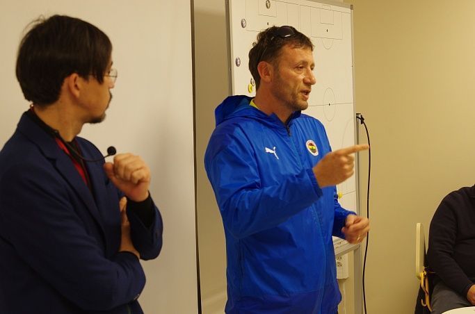 Серкан Горгедж во время встречи с участнииками стажировки Футбольная индустрия Турции. Фото: RMA