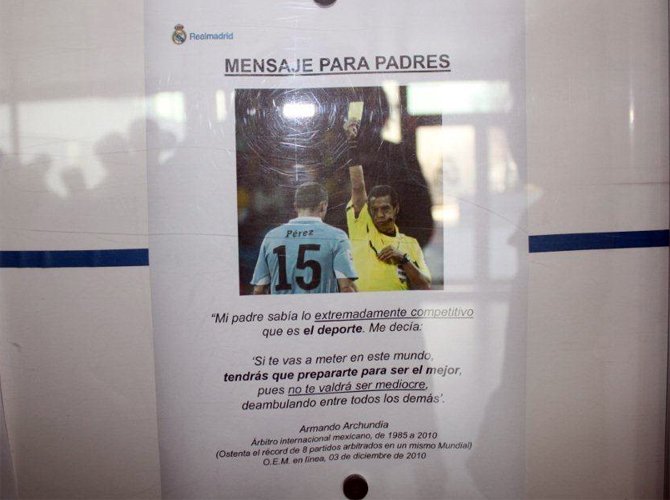 Один из методов воспитания характера — апелляция к авторитетам. Вот, например, цитата знаменитого мексиканского судьи Бенито Армандо Арчундиа, вывешенная на доске объявлений в фойе кантеры вместе с расписанием тренировок и инструкциями по подбору бутс для разных покрытий. «Мой отец отлично знал, сколь остро бывает соперничество в мире спорта. Он говорил: «Если ты избрал это своим занятием, то приготовься к борьбе за то, чтобы называться лучшим. Ведь не захочешь же ты быть просто одним из многих».