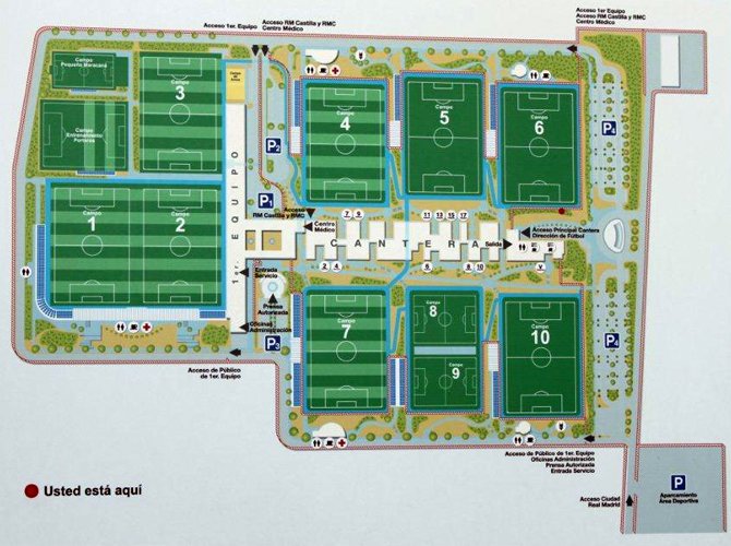 «Спортивный городок», а по-нашему говоря, база футбольного клуба «Реал» (Мадрид), был построен шесть лет назад, в 2004-м. Во что обошлось строительство доподлинно неизвестно: местные функционеры называют цифру 100 миллионов евро, но сами же уточняют, что некая часть этой суммы была потрачена на очередную модернизацию «Сантяго Бернабеу». Сейчас в «городке» тренируются все команды «Реала», начиная с первой и заканчивая той, за которую выступают 8-летние дети. Здесь же находится небольшой стадион имени Альфредо ди Стефано, где проводит свои игры второй состав. Всего к услугам футболистов — 9 полноразмерных полей (пять натуральных и четыре искусственных) , минифутбольная и волейбольная площадки и отдельная зона, приспособленная для тренировок вратарей. Тут же находится медицинский и восстановительный центры. И тут же, в здании кантеры (на верхнем фото), постоянно живут воспитанники Академии «Реала», приехавшие в Мадрид из-за границы или отдаленных испанских провинций. Что же касается основной команды, то ее игроки на ночь здесь не остаются практически никогда. В нынешнем сезоне накануне домашних игр они собираются в мадридском отеле Mira Sierra.