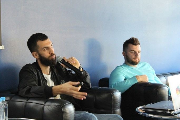 Иван Нефедкин (слева, с микрофоном) проводит занятие «Создание мультимедийных шоу для клубов HXЛ, НБА, РПЛ» на спортивном факультете Бизнес-школы RMA. Фото: RMA